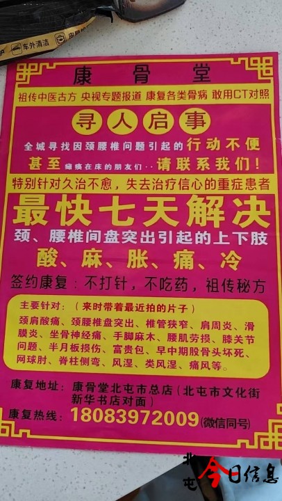 北屯康骨堂邀请内地骨科专家3月16至20日到店坐诊,免费检查,免费咨询,转发朋友圈可以进店享受免费拔罐一次,16号可以到店抽奖一次,活动真实有效